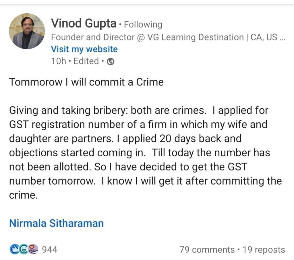 A LinkedIn post accused CBIC’s executive officers of corrupt practices in the GST registration process. The post claimed top officials are unaware of ground realities. Finance Minister responded, denying impropriety but acknowledging registration delays. - Kerala’s Fake Registrations & Revenue Leakage